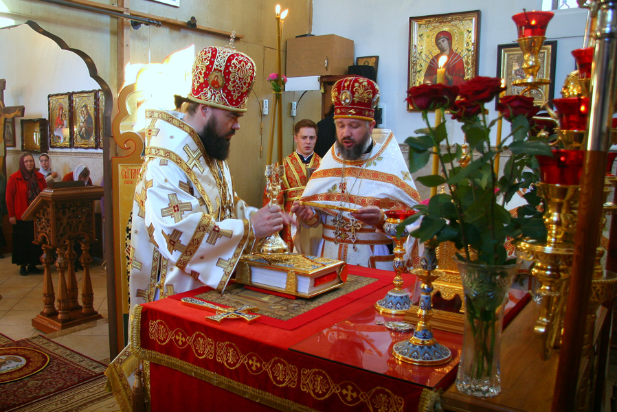 Крестовоздвиженский храмВ Неделю о слепом архиепископ Горловский и Славянский Митрофан совершил Божественную литургию в Крестовоздвиженском храме Горловки. Ему сослужили секретарь епархии, благочинный Николаевского округа Горловки протоиерей Владимир Туренко, настоятель храма, благочинный Богоявленского округа протоиерей Сергий Книгницкий, настоятель Богоявленского кафедрального собора протоиерей Александр Пеканов и клирик Крестовоздвиженского храма священник Владислав Шестаков.