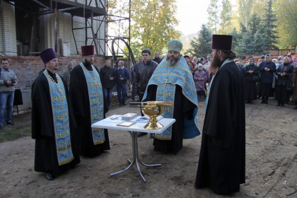 Молебен перед установкой куполов и крестов на Сретенский храм, 2013 г.