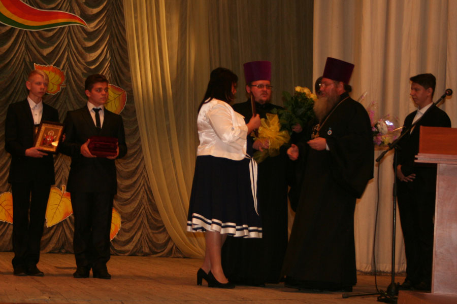 С тёплыми словами поздравления к учителям обратились почётные гости праздника — благочинный Дзержинского округа протоиерей Александр Лавриненко и настоятель Пантелеимоновского храма г. Артёмово Дзержинского горсовета протоиерей Николай Николенко.