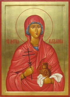 Евангелие повествует, что Мария Магдалина следовала за Господом, когда Он с апостолами проходил по городам и селениям Иудеи и Галилеи с проповедью Царствия Божия. Вместе с благочестивыми женщинами — Иоанной, женой Хузы (домоправителя Иродова), Сусанной и другими она служила Ему от имений своих (Лк. 8: 1-3). Мария Магдалина находилась и на Голгофе в момент распятия Господа. Когда все ученики Спасителя разбежались, она бесстрашно оставалась у Креста вместе с Богородицей и апостолом Иоанном.