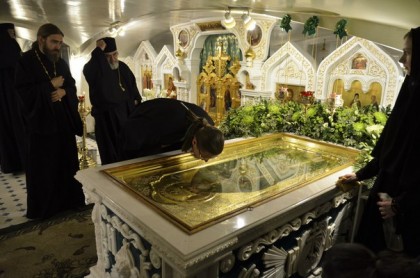 В Архангельск мы приехали поздно вечером. Там тоже была очень торжественная встреча, после которой снова отслужили молебен. Это происходило уже после одиннадцати ночи, но людей было много. Было видно, что народ пришёл не поглазеть, а помолиться.