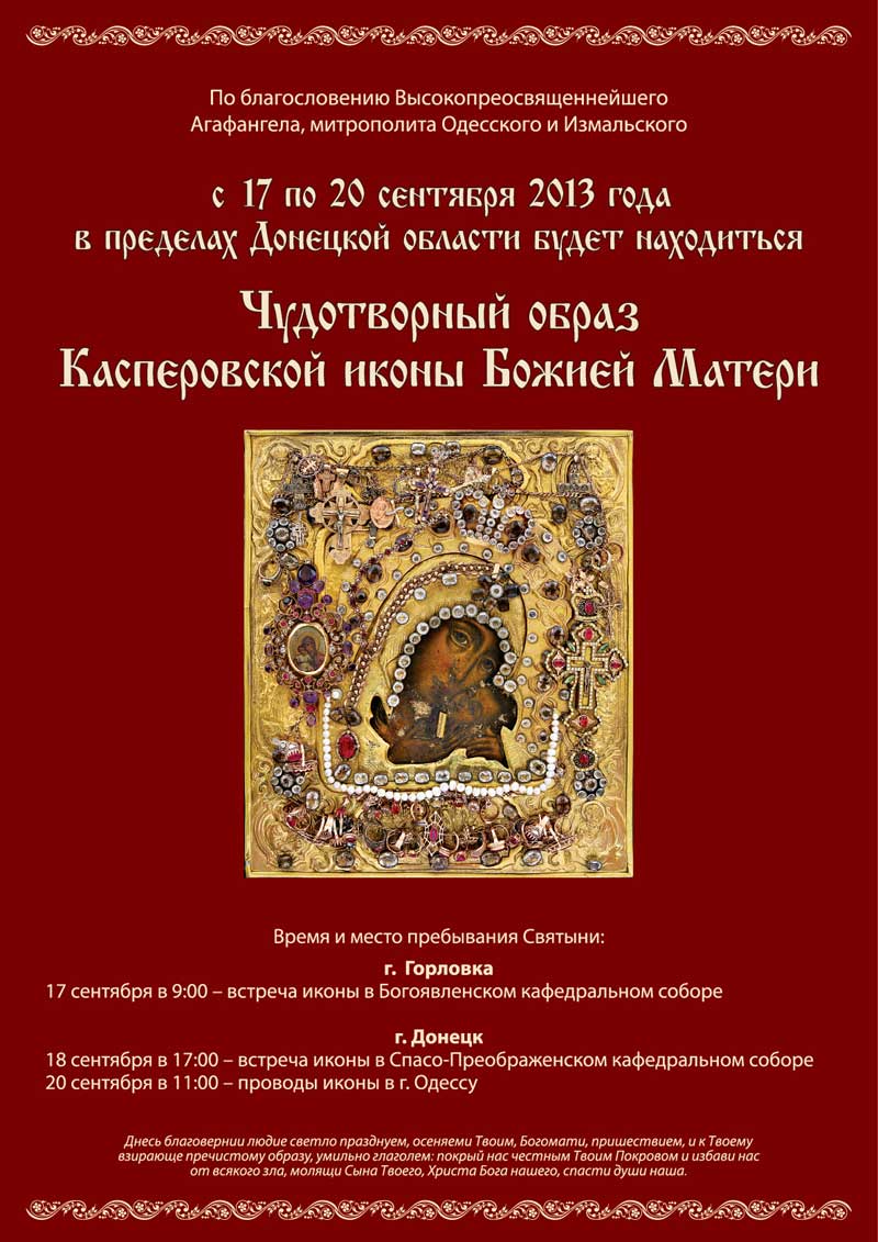 17-18 сентября — Касперовская икона Божией Матери в Горловке