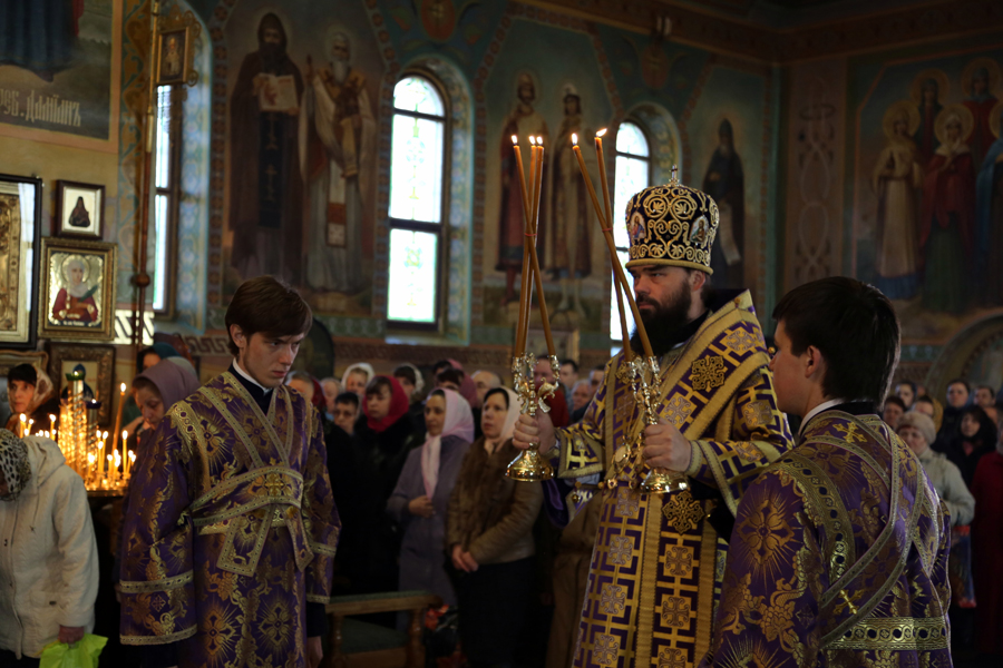 Всенощное бдение, Литургия и чин пассии с чтением акафиста Страстям Христовым в Николаевском архиерейском соборе.