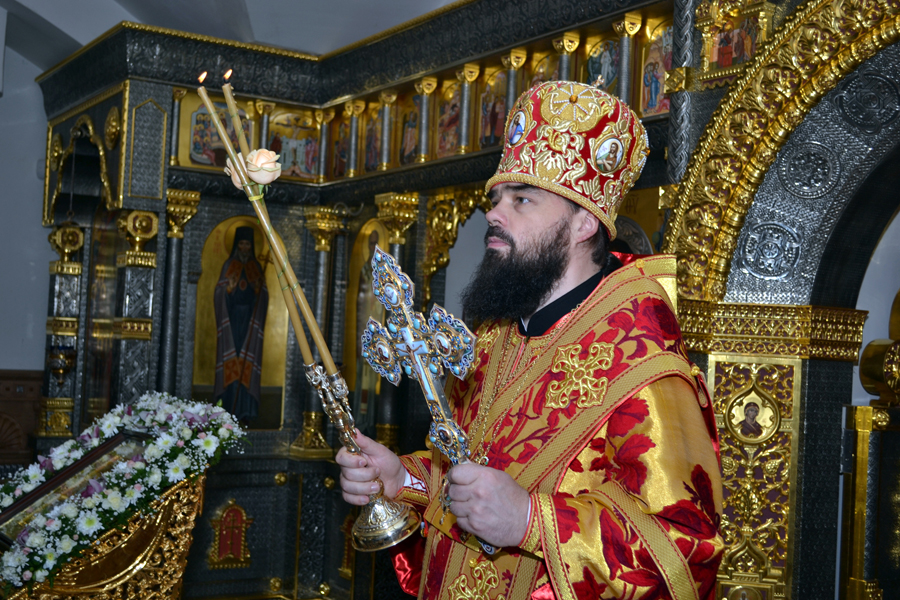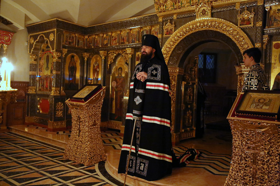 Всенощное бдение с литиёй в Николаевском архиерейском соборе Горловки, придел которого освящён в честь преподобного Никона.