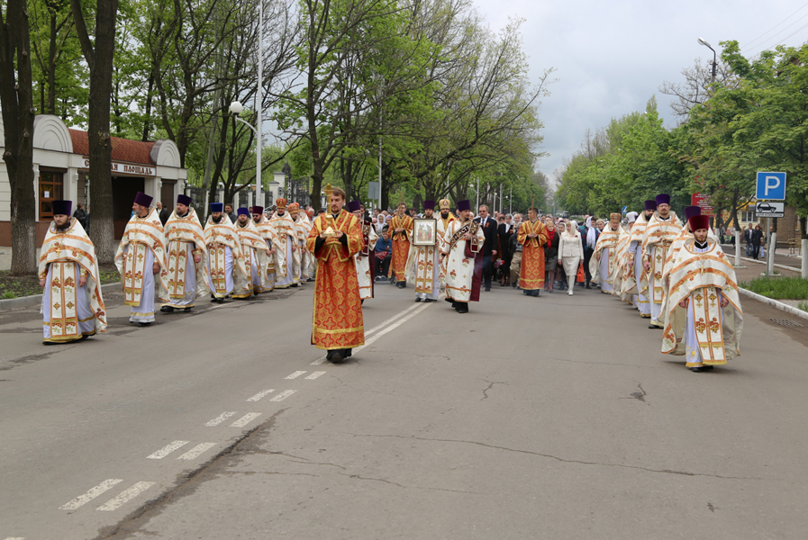 Торжественная встреча крестного хода в честь 1000-летия преставления святого князя Владимира в Горловке. Всенощное бдение в Богоявленском кафедральном соборе, куда прибыли чтимый список Почаевской иконы Божией Матери, иконы равноапостольных князя Владимира и княгини Ольги с частицами их святых мощей.