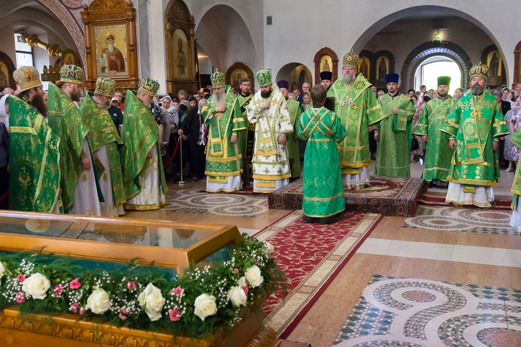 Совместная литургия с митрополитом Донецким и Мариупольским Иларионом и архиепископом Краснолиманским Алипием, викарием Горловской епархии, в главном храме Сергиевской женской обители, где хранится чтимый список этого образа.