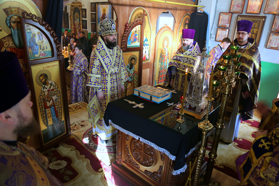 В Неделю 4 Великого поста, день памяти прп. Иоанна Лествичника, митрополит Горловский и Славянский Митрофан совершил Божественную литургию во временном храме в честь свт. Тихона, Патриарха Московского, расположенном рядом с разрушенным в советские годы Покровским храмом в посёлке Зайцево. По окончании литургии владыка обратился к собравшимся с архипастырским словом.