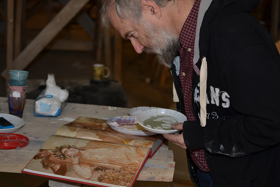 — Современные технологии — это, может быть, и здорово, но веками не проверено, а древняя технология проверена. В общем-то, иконы пишут по древней технологии — краски, минералы — я не буду долго распространяться.