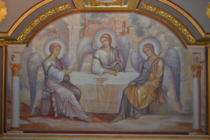 Наша мастерская делает все интерьерные работы — иконостасы, фрески, иконы. Мы разрабатывали дизайн иконостасов и алтаря, престола, церковной мебели, всех крупных культовых предметов, без которых невозможно обойтись.