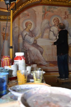 — На Софию Киевскую и на греческие аналоги того же времени. Но у нас очень широкий спектр. Нас даже в России обвиняют, что мы такие «всеядные», что у нас эклектика. У нас, например, в одном храме на одной стене присутствует XI век и XVII-XVIII век. Я считаю, что можно как пчёлка, собирать нектар с разных цветов, главное, — чтобы всё это переплавлялось, чтобы всё это было едино, всё это сочеталось. Ничего здесь плохого нет.