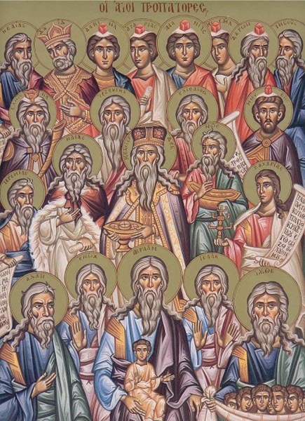 Сегодня, в преддверии Рождества Христова, когда земное время разделилось пополам, как церковная завеса, и мір стал «до» и «после» Рождества Христова, Святая Церковь вспоминает благодарной памятью тех, которые жили верой, ожиданием, и кто своей жизнью, своей плотью стали сродниками явившегося в мір Богочеловека Христа. Ведь Христос — Бог, приобщившийся человечеству, не новосотворённый Богом Человек, но и Его человечность уходит в историю человечества, жившего до Рождества Христова на земле.