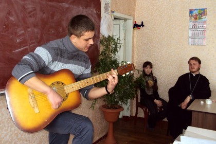 — Безусловно! Сначала смущались, диковинкой было, что священник в рясе, с крестом пришёл! Постепенно привыкли к этому, а спустя время стали адекватные вопросы задавать — не глупости, не «для галочки», а спрашивать действительно серьёзные вещи. Так что прогресс есть, однозначно. К тому же общение нередко выходит за рамки занятий: во-первых, дети остаются по окончании встречи, чтобы побеседовать с батюшкой, и таких — всё больше; а во-вторых — многие приходят уже ко мне на занятия — учиться играть на гитаре…