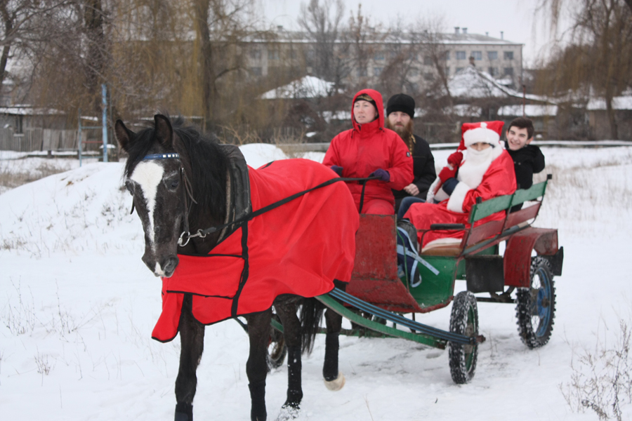 До начала праздника все желающие могли покататься по территории усадьбы на лошадной упряжке вместе с Дедушкой Морозом. Эта забава оказалась самой любимой у горожан — отбоя не было не только от детей, но и от взрослых.