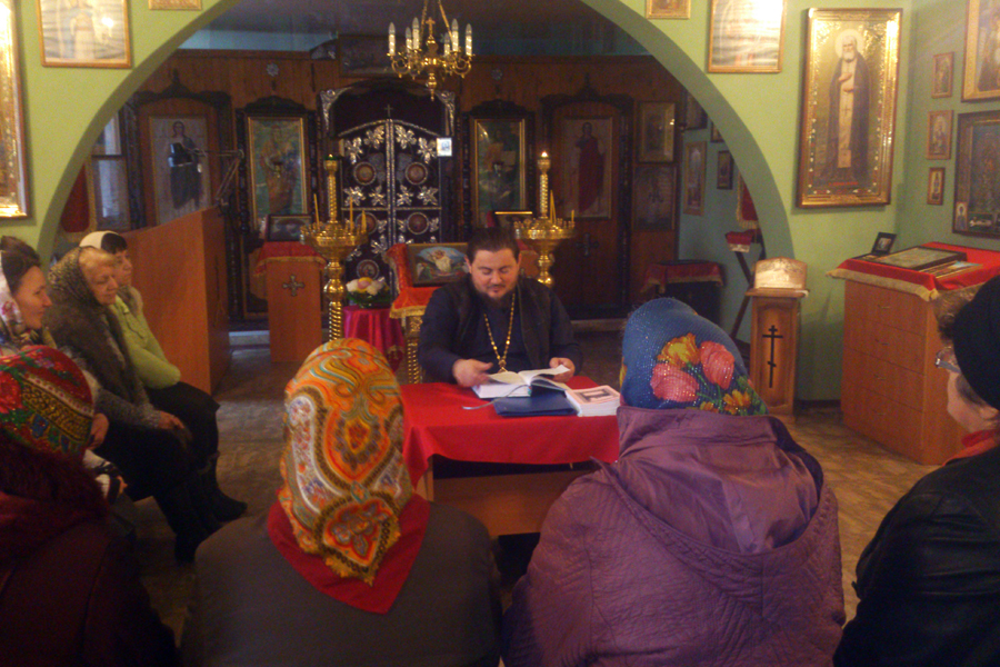 Духовные беседы в храме г. БелицкоеВ храме мученицы царицы Александры г. Белицкое проходят духовные беседы для прихожан и жителей города. Занятия по воскресным дням после Божественной литургии ведёт настоятель храма протоиерей Сергий Кравченко. На них все желающие имеют возможность изучать Священное Писание Ветхого и Нового Завета, историю Церкви, устройство православного храма и богослужение, а также задавать вопросы священнику. На занятия приходят взрослые, молодёжь, и даже люди преклонного возраста.