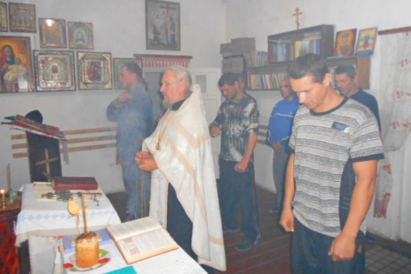 Многие из членов тюремной церковной общины пришли к вере уже здесь, за колючей проволокой, переосмыслив свою жизнь и став на путь исправления и соблюдения евангельских заповедей. Сейчас силами этого небольшого прихода на зоне строится храм. Строительство ведётся уже два года. А пока каждую неделю на протяжении вот уже шести лет в молебной комнате на территории колонии проводятся молебны, совершаются Таинства исповеди и причастия. Здесь есть и православная библиотека, пока скромная, но заключённые её с удовольствием посещают.