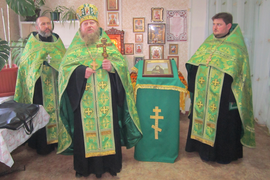 Молебен, который проходил в помещении столовой на 3-м этаже онкологического диспансера, совершил благочинный Успенского округа Краматорска протоиерей Геннадий Жолобенко в сослужении настоятеля Александро-Невского храма протоиерея Сергия Кравченко и настоятеля храма святых Косьмы и Дамиана поселка Семёновка иерея Сергия Непочатова.