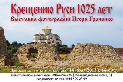 14 июля 2013 года в 14:00 в выставочном зале галереи «Соборная» (Железнодорожное шоссе, 3) в Киеве откроется выставка фотографий Игоря Граченко «Крещению Руси 1025 лет». Работать она будет по 29 июля.