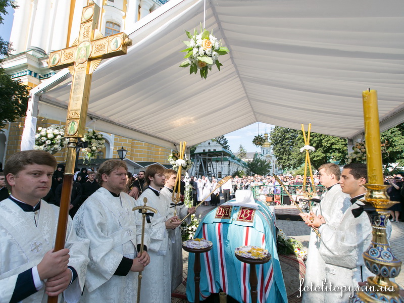 7 июля, в день Рождества Пророка и Предтечи Господня Иоанна, на площади перед Успенским собором Киево-Печерской Лавры состоялась заупокойная Божественная литургия, после которой был совершён чин отпевания Блаженнейшего Митрополита Владимира. Заупокойное богослужение совершил Местоблюститель Киевской митрополичьей кафедры митрополит Черновицкий и Буковинский Онуфрий в сослужении представителя Святейшего Патриарха Кирилла митрополита Волоколамского Илариона, собора архипастырей Украинской Православной Церкви, множества архиереев и духовенства — представителей Поместных Православных Церквей, сообщает пресс-служба Украинской Православной Церкви.