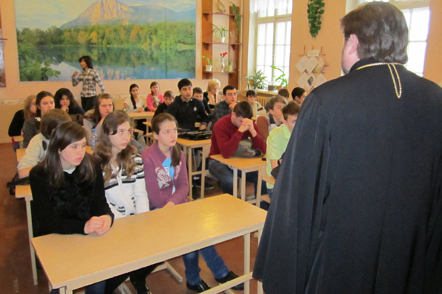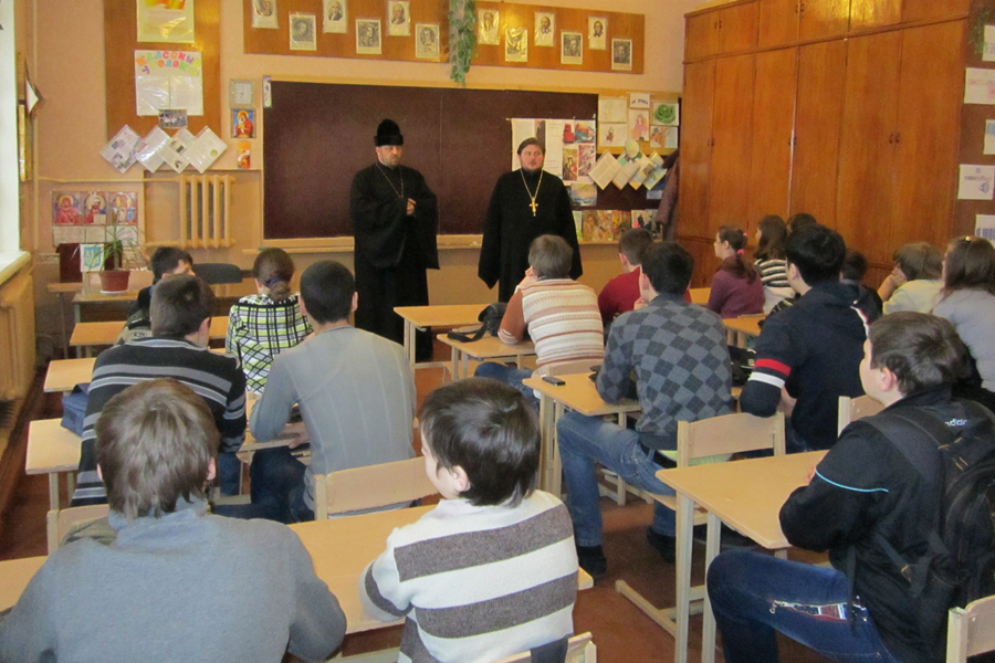 Урок был посвящён христианскому смыслу поста, проблемам ценности человеческой жизни и любви к ближним. Протоиерей Сергий Миронов, участник войны в Афганистане, рассказал старшеклассникам об этой войне, затронув темы христианского долга и отношения к врагам. Священник призвал ребят стараться всегда быть воинами — не только на службе в армии, которая некоторым из них предстоит в будущем, но и в повседневной жизни — в борьбе со своими страстями и вредными привычками, в отстаивании правды, в честном и нелицемерном отношении к ближним.