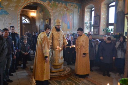 В этот же день архиепископ Митрофан вместе с собором духовенства совершил вечерню с чтением акафиста перед чтимым списком Афонской иконы Божией Матери «Скоропослушница», хранящимся в монастыре.