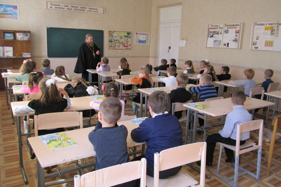 В Великом посту благочинный Успенского округа Краматорска протоиерей Геннадий Жолобенко, клирик Успенского храма иерей Игорь Степанченко и настоятель храма Почаевской иконы Божией Матери иерей Евгений Голубев провели уроки христианской этики в параллелях 1–11 классов общеобразовательной школы № 15.