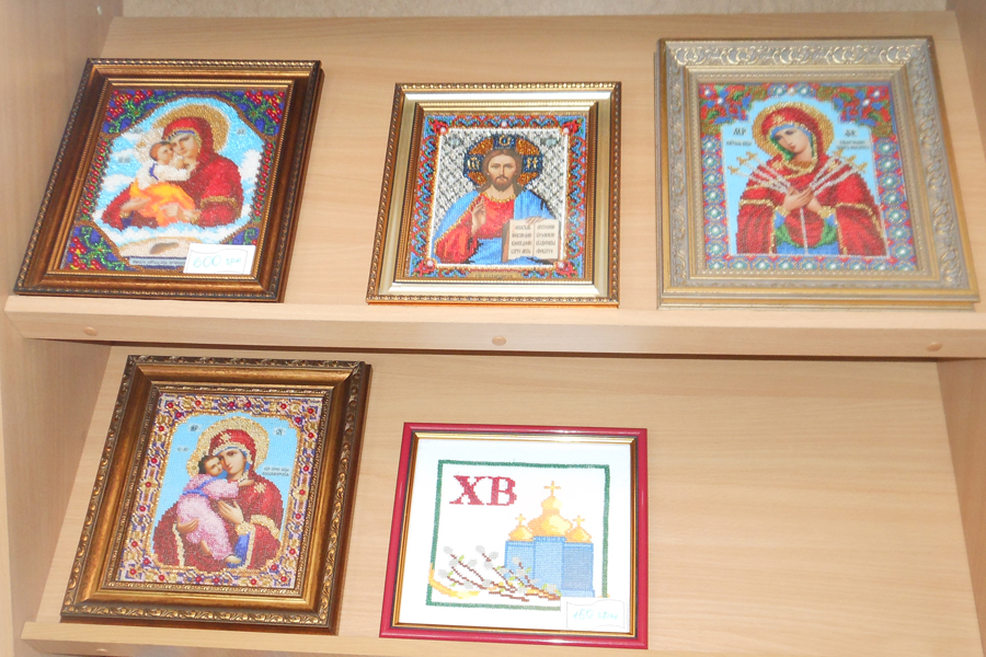 После концерта в школе-интернате прошла выставка творческих работ воспитанников, посвящённая Светлому Христовому Воскресению. На ней было представлено множество вышитых икон, рушников и картин пасхальной тематики. Идея вышивки икон принадлежала самим детям, которые буквально загорелись этим видом творчества. Одну икону — преподобного Сергия Радонежского — вышитую бисером, ребята даже подарили углегорскому храму Благовещения Пресвятой Богородицы, куда они часто приходят вместе с наставниками.