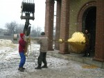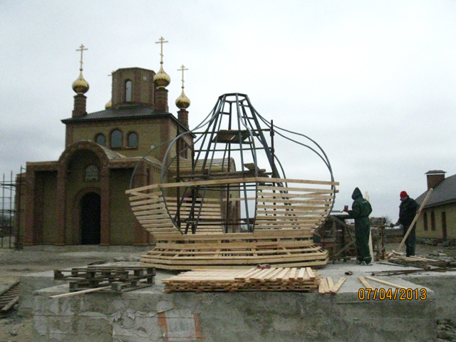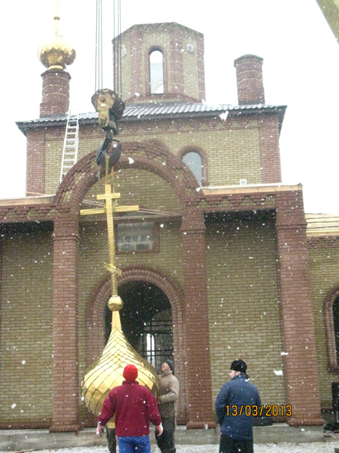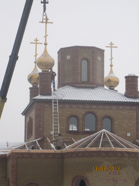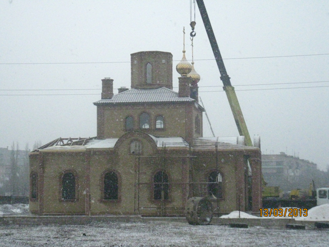 Помочь строительству центрального храма Углегорска взялся депутат Енакиевского городского совета Сергей Федорович Евтягин. Благодаря его содействию, всего за три года были полностью возведены стены церкви. А недавно на строящийся храм были водружены первые четыре купола, изготовленные мастерами в Луганске. Всего храм, возводимый в стиле традиционной русской архитектуры, будет иметь пять золотых куполов. После установки центрального купола высота здания церкви составит 27 метров.