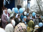 После литургии и крестного хода прихожан и гостей храма с праздником Благовещения поздравили учащиеся детской воскресной школы, исполнив стихи и песни, рассказывающие о празднике.