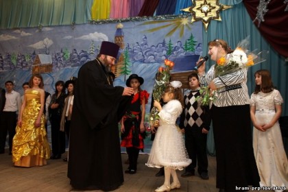 Сейчас у нас преподаётся и сценическое искусство. Наш преподаватель Владимир Владимирович Землянко — главный режиссёр Дома культуры. Он ходил в наш храм, и однажды мы обратились к нему за советами для одной из постановок. Он пришёл несколько раз, а потом предложил свою помощь. И сейчас все желающие после изучения основных предметов могут остаться, чтобы вот так необычно развивать свои актёрские способности. Он организовывает все праздники, игровые программы. Детям очень нравится.