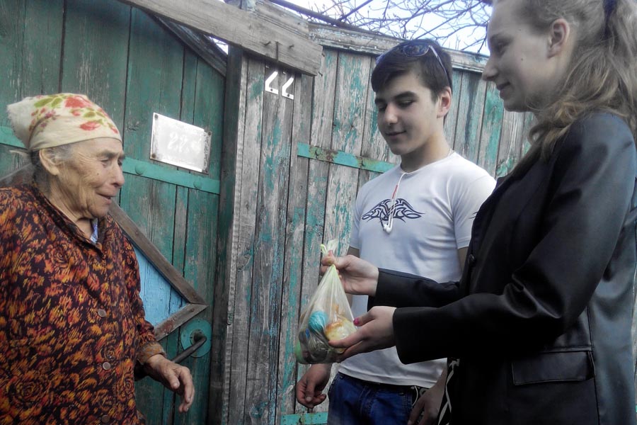 Воскресная школа Тихвинского храма поздравила с Пасхой нуждающихся жителей посёлка Дружба