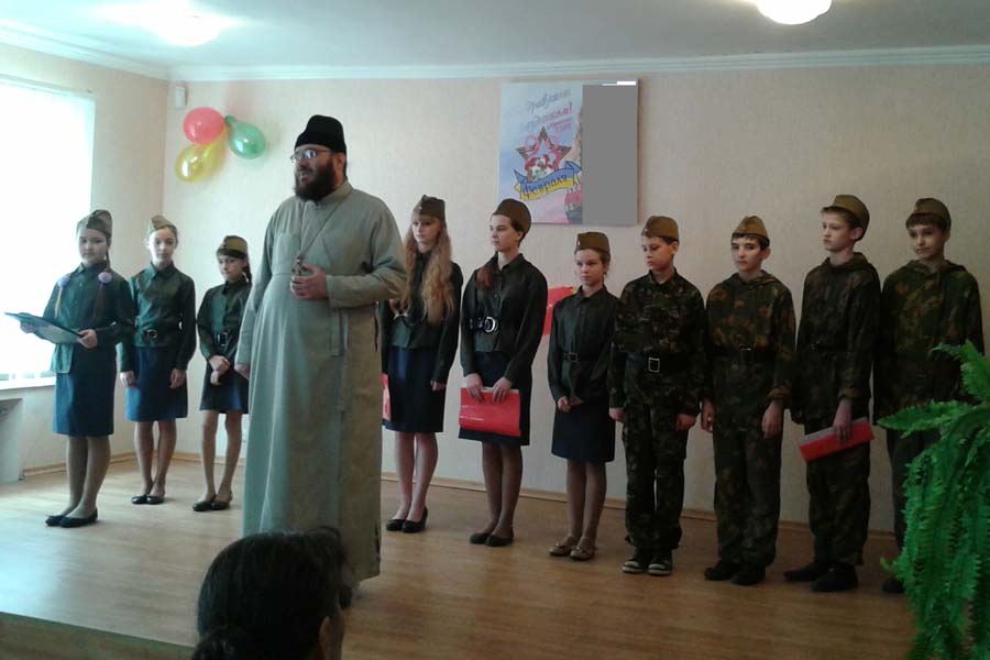 Воспитанники воскресной школы исполнили песни военных лет, прочли стихи о Родине, а также в музыкально-литературной постановке рассказали о героическом прошлом Руси, о подвигах её великих полководцев и славных страницах истории казачества.