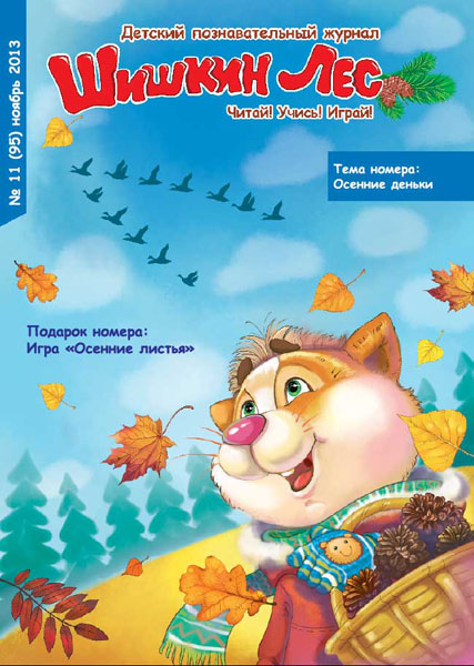 Шишкин лесВышел в свет ноябрьский выпуск журнала «Шишкин Лес». Тема этого номера — «Осенние деньки». Прочитав журнал, ребята узнают, куда улетают птицы, познакомятся со страной, на флаге которой изображен кленовый лист, смогут сделать весёлые игрушки из шишек. Как всегда, юных читателей ждут интересные сказки, увлекательные логические задания и яркие иллюстрации. Подарок этого номера — игра «Осенние листья».